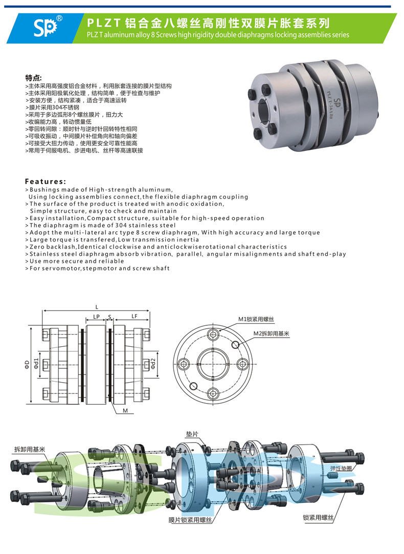 PLZT铝合金八螺丝高刚性双膜片胀套系类