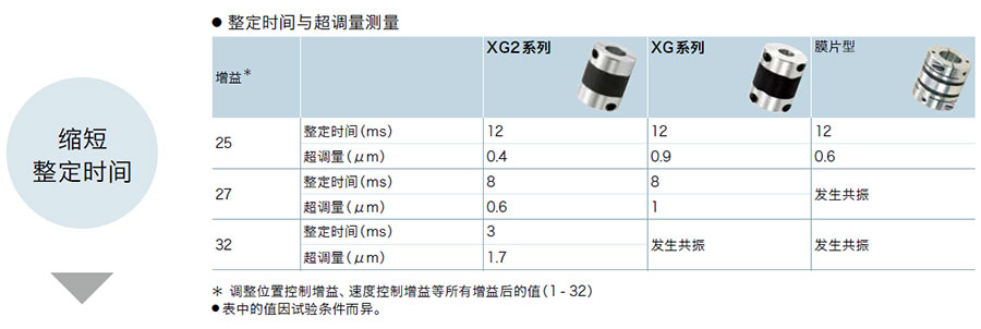 通过提高伺服马达的极限增益,可缩短整定时间。