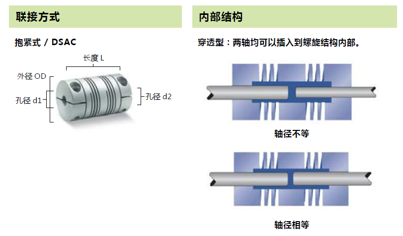 ※ 如果选择带有* 的孔径的产品,则它的回转直径要略微高于产品外径OD(仅限抱紧式)。