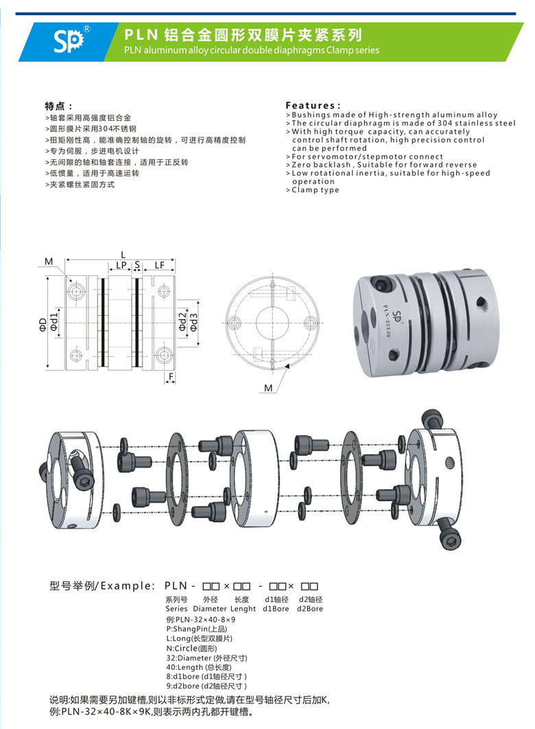 CPDW40膜片式联轴器 PLN铝合金圆形双膜片夹持型