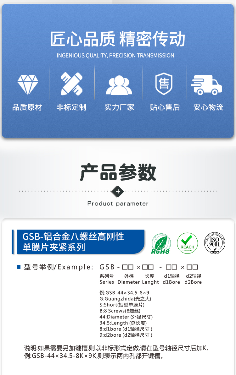 GSB--铝合金巴八螺丝高刚性单膜片夹紧系列